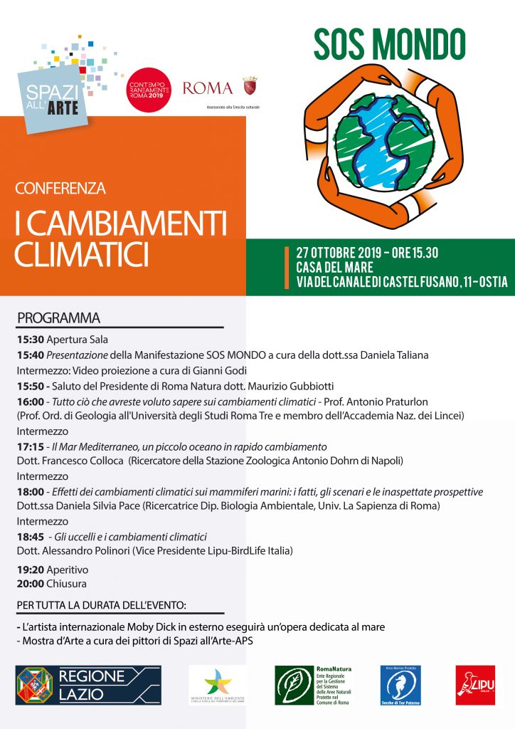 Domenica 27 ottobre a partire dalle ore 15,30 inaugurazione e apertura della rassegna presso La Casa del Mare, centro visite dell’Area Marina Protetta delle Secche di Tor Paterno gestite dall’Ente Regionale RomaNatura (Via di Canale di Castel Fusano,11- Borghetto dei Pescatori) con la Conferenza dal titolo “I Cambiamenti climatici”, che vedrà la presenza di voci autorevoli a livello nazionale.