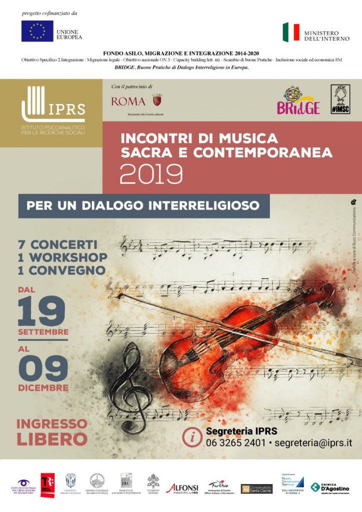 Promosso dal Ministero dell’Interno Dipartimento per le Libertà Civili e l’Immigrazione e finanziato dal Fondo Asilo, Migrazione e Integrazione 2014-2020 il progetto prevede 7 concerti, 1 workshop e 1 convegno, dal 19 settembre al 9 dicembre.  Jazz, canto romano antico, la musica ebraica, araba medievale, classica turca, cattolica cinese, i canti dei Griot del Senegal, danze e musiche sacre induiste e giapponesi di tradizione buddista.
