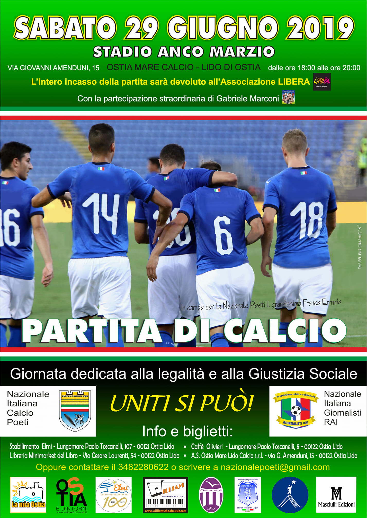 Ci siamo. Sale l’attesa per il confronto fra le due nazionali, quella dei poeti e quella dei giornalisti. “Quella del 29 giugno, ci dice Michele Gentile dello staff organizzativo dell’incontro, sarà una giornata all’insegna dello sport, della cultura e della solidarietà. Incroceremo le penne, noi poeti e loro giornalisti Rai, e ci confronteremo sul campo, con tanto disinteressato agonismo, per favorire il dibattito su due argomenti che condividiamo, ovvero legalità e giustizia sociale. L’intero incasso della partita sarà donato a Libera, l’Associazione di Don Ciotti.”