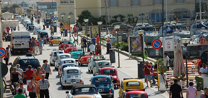 Un arcobaleno di colori ha ravvivato l’area antistante la spiaggetta del porto di Roma nella mattinata di ieri, domenica 6 settembre. Il primo raduno Fiat 500 Club Italia ad Ostia, organizzato per battezzare la nascita del gruppo del Litorale, non poteva avere migliore riuscita. Circa duecento le vetture partecipanti e tanti modelli d’epoca. E l’allestimento è stato preso d’assalto da curiosi e appassionati amatoriali, famiglie intere e nostalgici anziani immersi nei ricordi evocati da quelle macchina guidate tanto tempo prima. 500R, 500L, bianchina, decappottabile, van e familiari, tutti modelli a far bella mostra di se’. Ed ancora una bianchissima moretti ed un’abart rossa fregiata da un Colosseo fiammante sullo sportello ed anche una timida Topolino grigia.